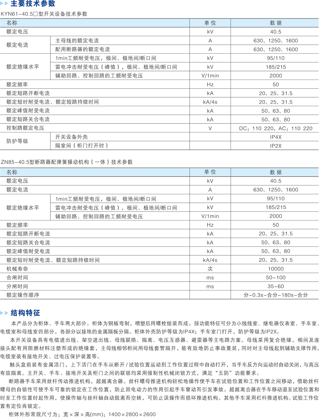 > KYN61-40.5 鎧裝移開式交流金屬封閉開關設備