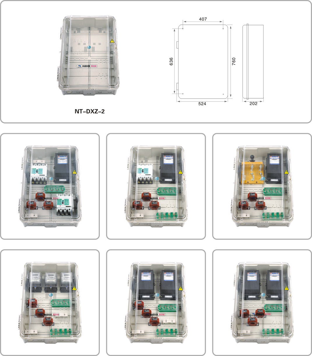 NT-DXZ系列三相多功能動力計量箱是一種功能多樣化、防竊電透明化的新一代計量配電箱,可滿足不同用戶的多種需求。具有體積小、功能多變、組合方便等特點(diǎn),箱內(nèi)空間可依據(jù)客戶需求設(shè)置各類電表、電流互感器、低壓熔斷器、低壓斷路器、進(jìn)出線端子、聯(lián)合接線盒的安裝位。底座上設(shè)有各類安裝槽,方便安裝各類原件,并可以在預(yù)付費(fèi)電表、開關(guān)相應(yīng)的位置設(shè)置IC卡窗口和開關(guān)窗口。